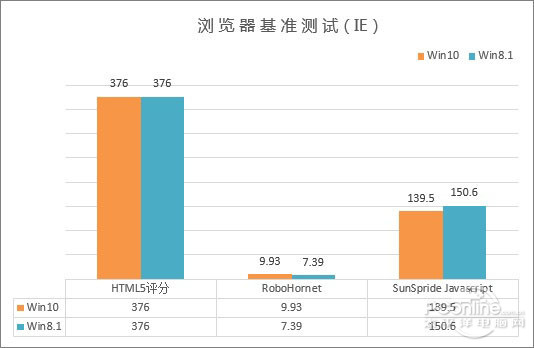 小结:为了照顾不同的喜好的用户,我们这里选择了两款浏览器作为参测样本,一是系统自带的IE11(Win10预览版暂未加入IE12),二是日常点击率同样很高的Chrome。最终结果将分别从JavaScript性能、HTML5评分、RoboHornet三方面进行打分,具体结果如下。
