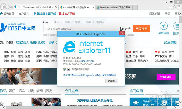 图17 传说中的IE12并未到来,不过Win10预览版中IE版本号有了小幅提升,至11.0.9841.0