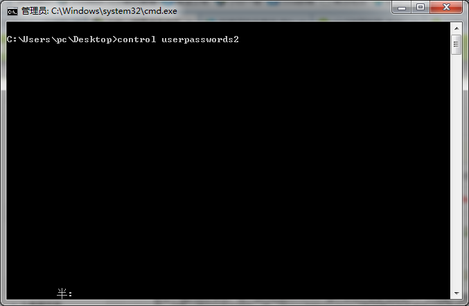 2.点击打开命令窗口,输入以下命令行:control userpasswords2,敲回车即可打开Windows 7系统的用户帐户管理窗口。