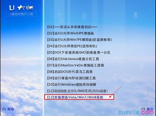 3.设置电脑从U盘启动,插上U盘启动电脑,进入选择菜单界面,选择【12】,然后在下一个界面中选择【2】进入WINPE安装Win7