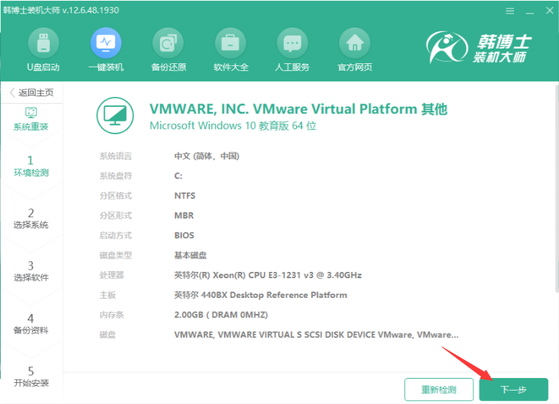 2.接着自动检测到电脑的安装环境,直接下一步即可。