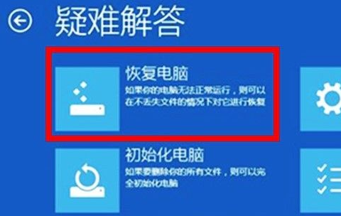 1、按住Shift键并将电脑重启,然后找到选项页面,点击疑难解答。