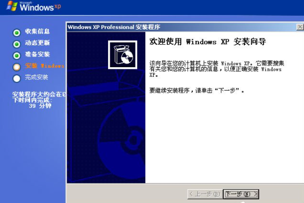 10、开始进行xp系统的安装,安装过程需要半小时左右。