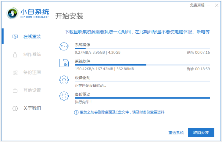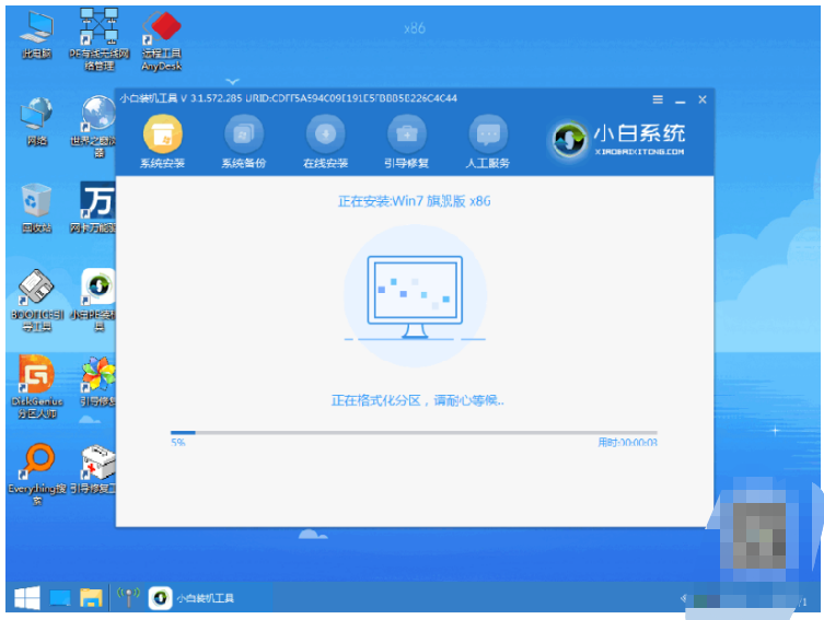 5、进入pe系统后,小白装机工具此时将会开始自动安装系统。