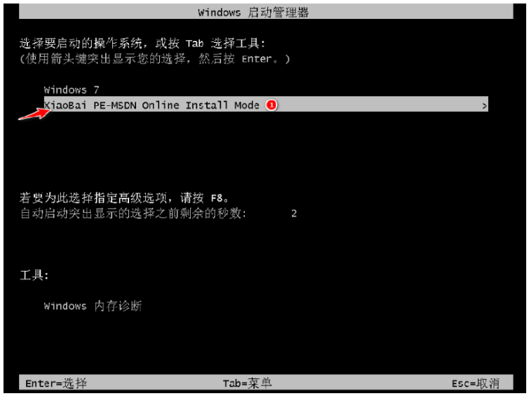 4、电脑重启之后进入了开机选项页面,选择xiaobai-pe系统按回车进入。