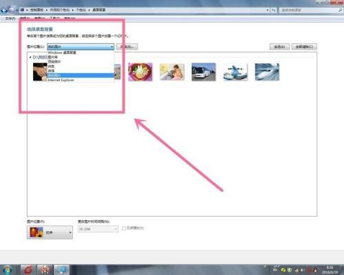 5、除了使用系统推荐的图片做桌面背景以外,我们还可以从网上或别的地方下载自己喜欢的个性图片。然后我们可以按浏览找到我们保存图片的文件夹,选择一张我们喜欢的图片。