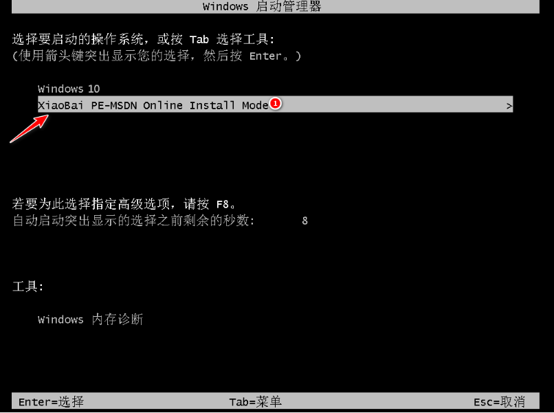 来到开机选项界面,如图示,选择第二项进入xiaobai-pe系统。