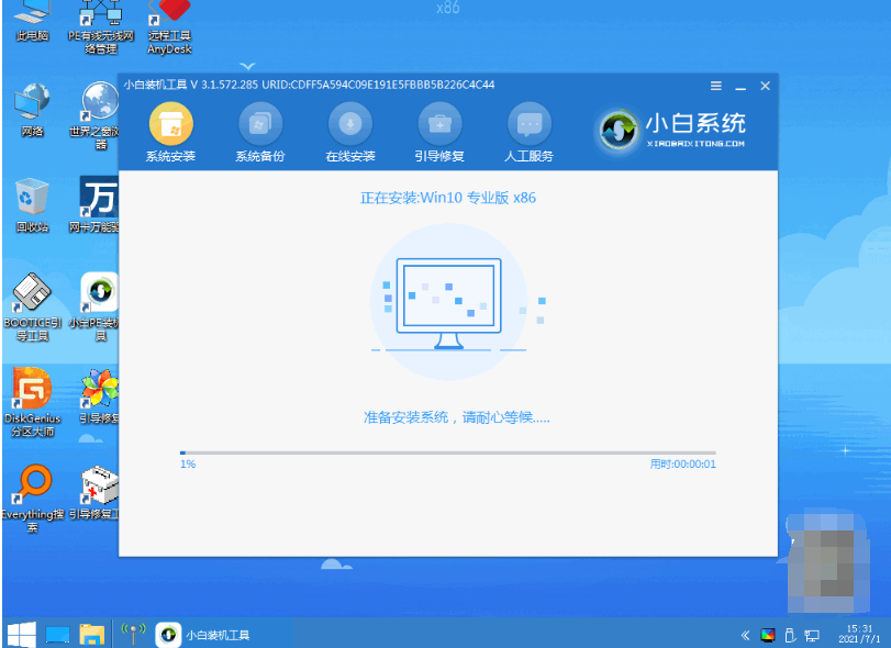 等待软件自动下载系统镜像并部署环境,完成的时候,自动会重启电脑。