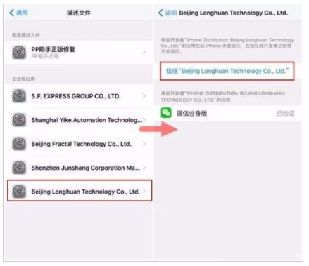 5、选择【对用的开发者选项】-【开发者信任(为蓝色字)】-【点击信任】;