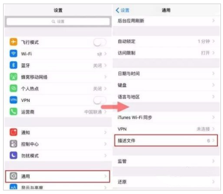 4、我们需要找到系统的【设置】-【通用】-【描述文件与设备管理】栏目;