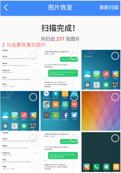 4、扫描结束后,在界面中将会显示扫描出来的数据,请勾选要恢复的手机照片文件,等待数据恢复完成即可。