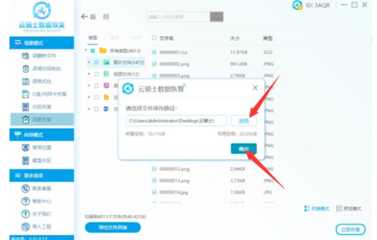 4、最后点击游览选择文件保存路径,再点击确定,等导出完毕,硬盘数据就恢复了。