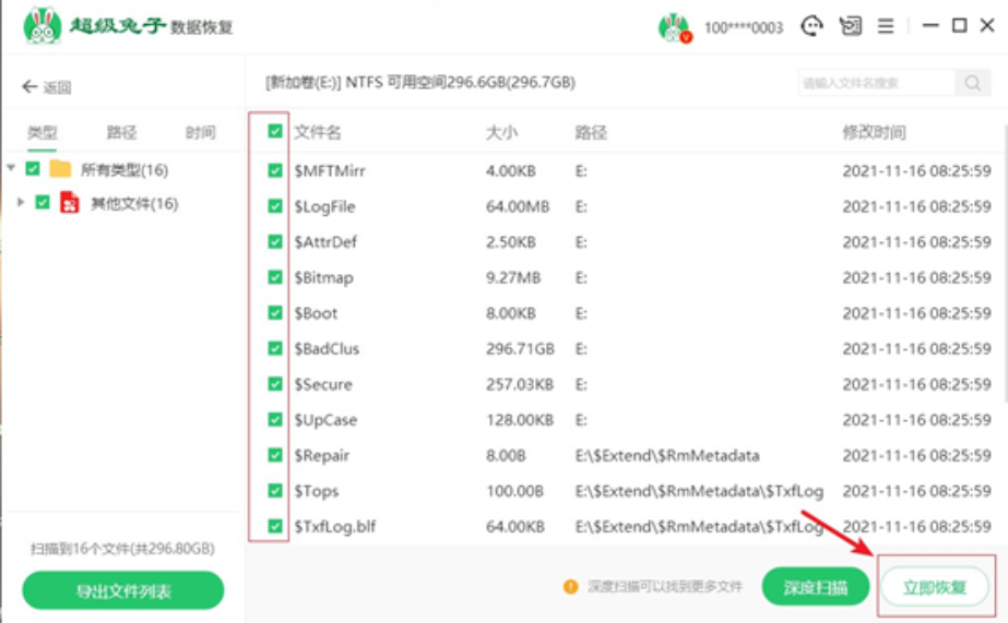 4、等待扫描完成,勾选需要恢复的文件,点击【立即恢复】。