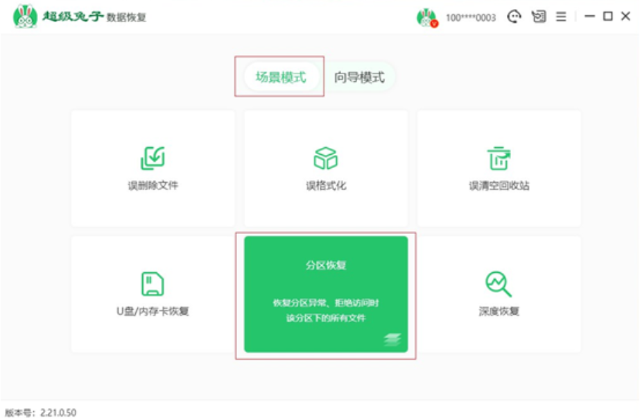 2、打开软件,切换至【场景模式】,点击【分区恢复】。