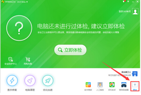 1、首先进入360安全卫士主页面,点击右下方的更多选项。