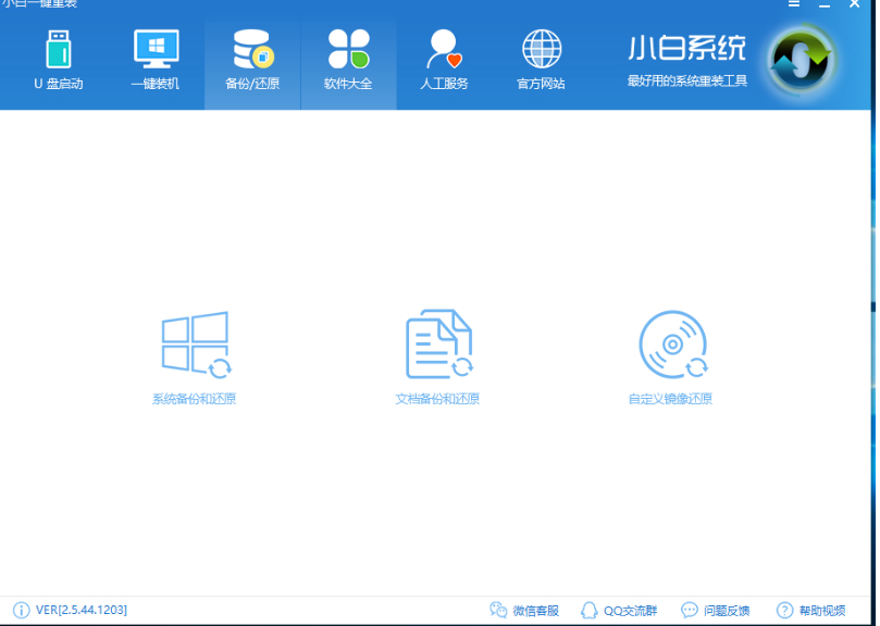 下载小白数据修复工具打开小白,点击【备份/还原】,然后点击【文件备份和还原】;