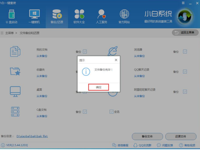5.弹出备份完成提示框,点击【确定】,完成备份操作。