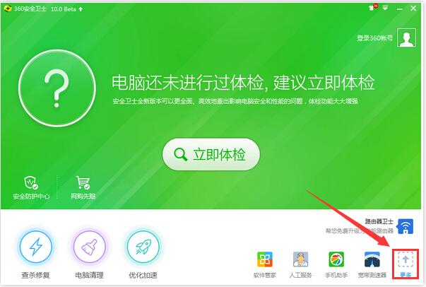 1、进入到360安全护卫主页界面,立即点击右下角的大量。
