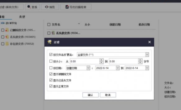 软件扫描完成后,在过滤丢失数据时,软件过滤更精确,方便用户精准查找丢失数据。