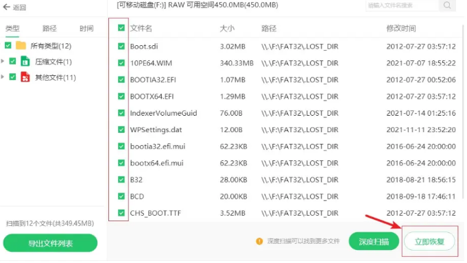 4.扫描完成后,我们选择要恢复的,然后点击立即恢复就可以了。