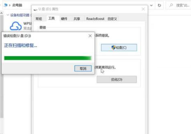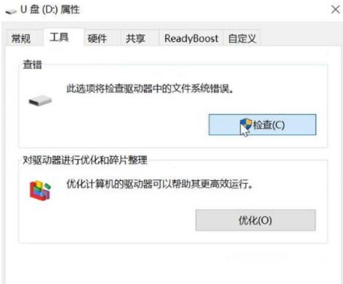 2.在属性页面中选择“工具”项,并点击页面右侧的“检查”按钮自动检查修复;