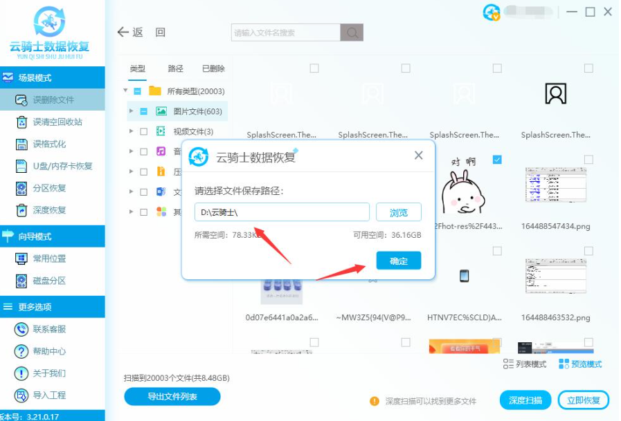 扫描完成后,恢复出来的数据文件将显示在扫描结果上,点击右下方的“预览模式”预览一些需要恢复的照片文件等,最后勾选需要的文件,点击右下角的立即恢复按钮,将数据另存在其他盘中即可。