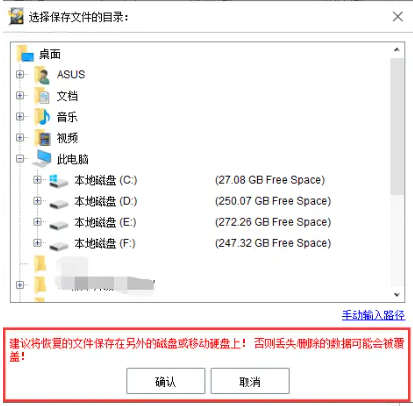 4、在以下的目录窗口界面,;选择保存没有保存过的位置,点击【确定】,文件即可恢复。