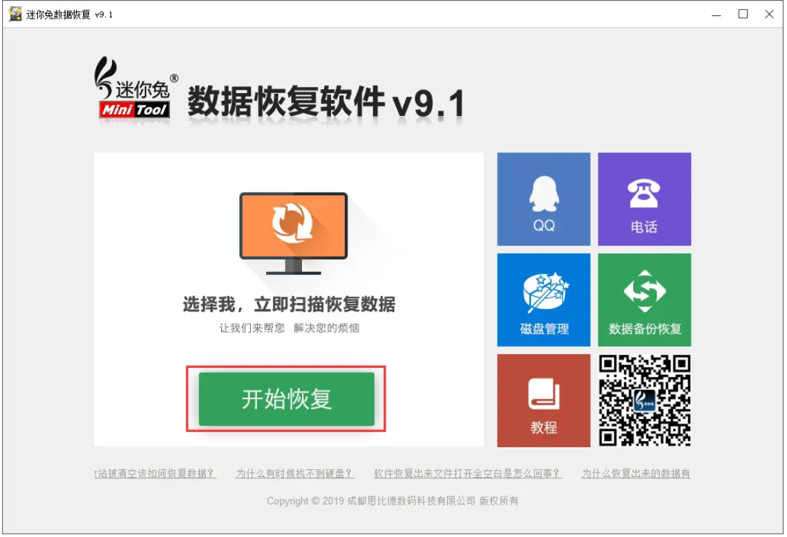 1、打开迷你兔数据恢复软件,其主界面如图,点击【开始恢复】。