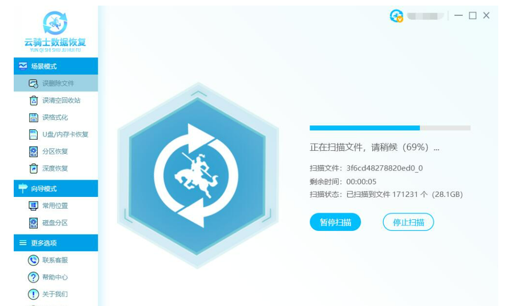 3、等待扫描,扫描速度主要根据当前所扫描的磁盘大小和数据多少决定。