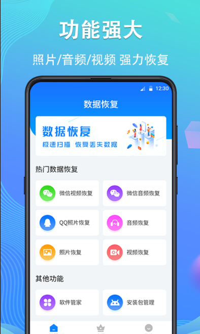 数据恢复王这是一款十分专业的手机数据恢复软件,它通过较为强大的系统底层扫描检测技术,快速的帮助我们找回并恢复您丢失的手机数据,支持误删还有未保存微信语音、图片、视频、文件恢复。