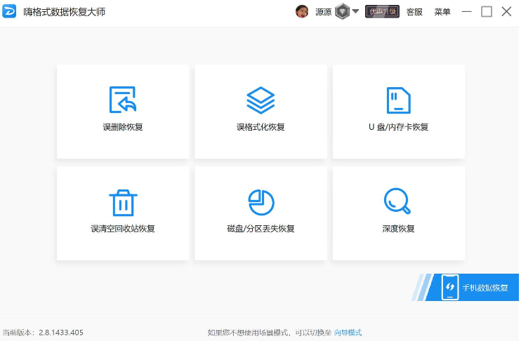 运行嗨格式数据恢复大师,选择软件中的恢复模式。