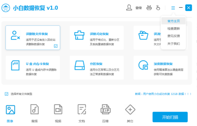小白数据恢复工具的使用相对更加简单些,界面比较清晰,没有分区的功能,专注数据恢复这块。具体的使用方法如下: