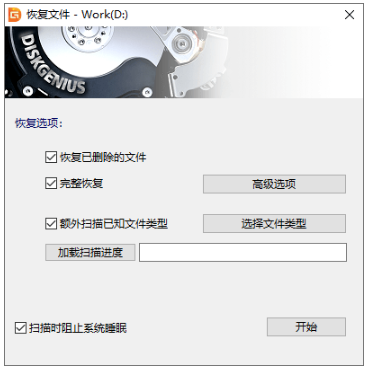 第二步:点击"开始",这时软件会自动进行深度扫描。我们无需对默认设置进行修改,直接点击"开始"即可。