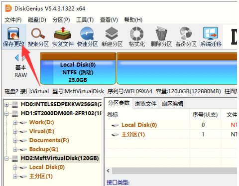 第四步:点击"保存更改",将找到的分区保存到分区表,这时丢失的分区就会被系统分配盘符,这样就能在系统正常访问这些分区了。