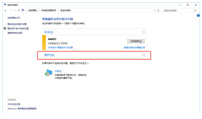 首先按 Win + X 键,选择「控制面板」,按下「系统和安全」> 「安全和维护」> 展开 「维护」并按下「开始维护」,按下「重新启动」