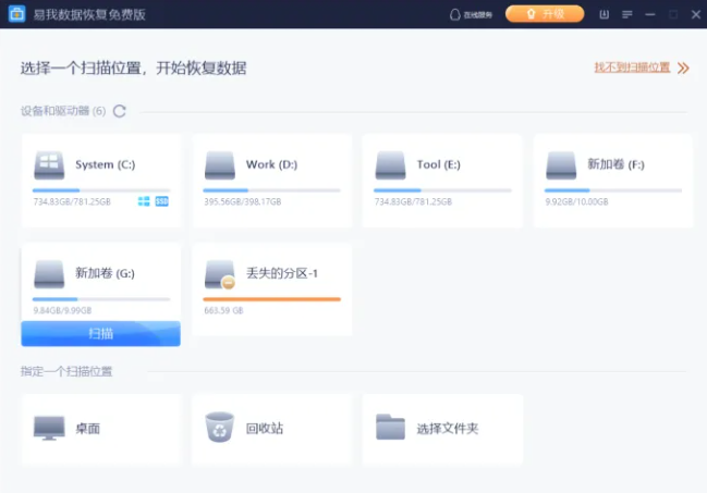 1.选择扫描位置,检查所有的硬盘或设备是否正确连接电脑并且能被读取。如果读不到,请「刷新」磁盘,确保所有硬盘都可以被扫描到。