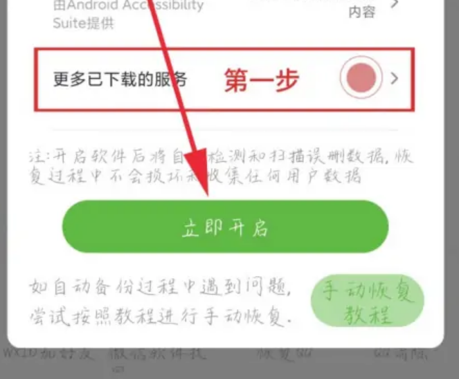 6、点击“更多已下载的服务”,接着点击“微信恢复助手”,找到“开启服务”。