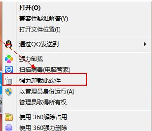 右击程序软件,点击强力卸载即可。