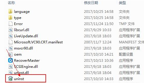 2、在打开的文件里找到“uninst”这个文件,并带有回收站图标,再双击这个文件。