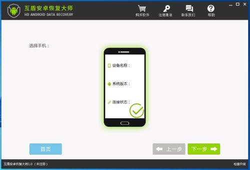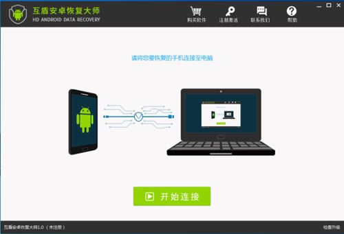 2、将手机与电脑连接,然后运行互盾安卓恢复大师,点击界面的“开始连接”,是手机与电脑进行成功连接。