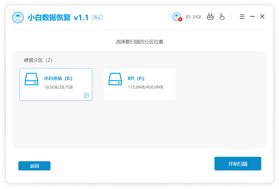 软件版本:小白数恢复 v1.1