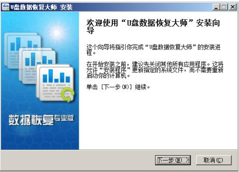 1、首先下载u盘数据恢复大师安装程序到电脑,双击打开,进入安装向导。