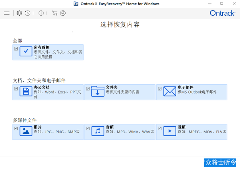 把它放在前面位是因为我非常喜欢这款数据恢复软件的界面设计。因为我不是资深的电脑玩家,所以作为一名用户,我会更加在意软件的设计和用户体验。EasyRecovery的界面简洁明了,使用起来也十分简单,甚至一个不会使用电脑的人都能准确无误地使用它。