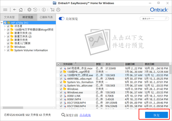4、点击软件页面右下角的“恢复”,并将恢复完成的数据选择保存到该移动硬盘中,移动硬盘的修复就完成了。
