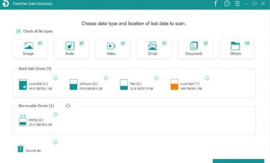 FonePaw Data Recovery这个工具可以从硬盘、SD卡、存储卡等介质中恢复已被删除的图像、音频、视频、电子邮件、文档还有其他文件等等.