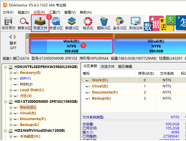 方法二:通过DiskGenius软件恢复数据