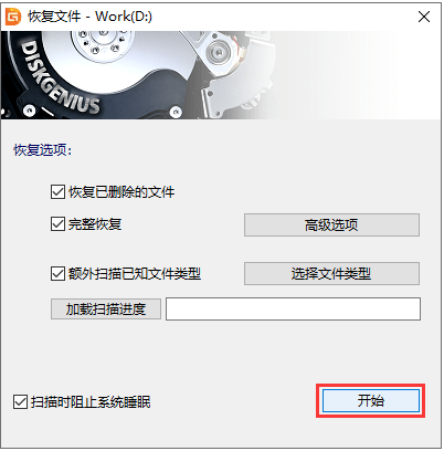 2、鼠标点击“开始”按钮进行扫描。
