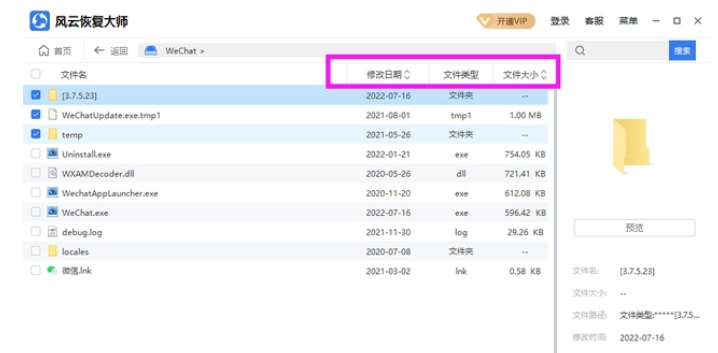 2、等待扫描结束后,文件都显示出来了,大家可以在右上方的搜索框里输入文件的类型等进行筛选,或者在左边位置进行文件类型选择。