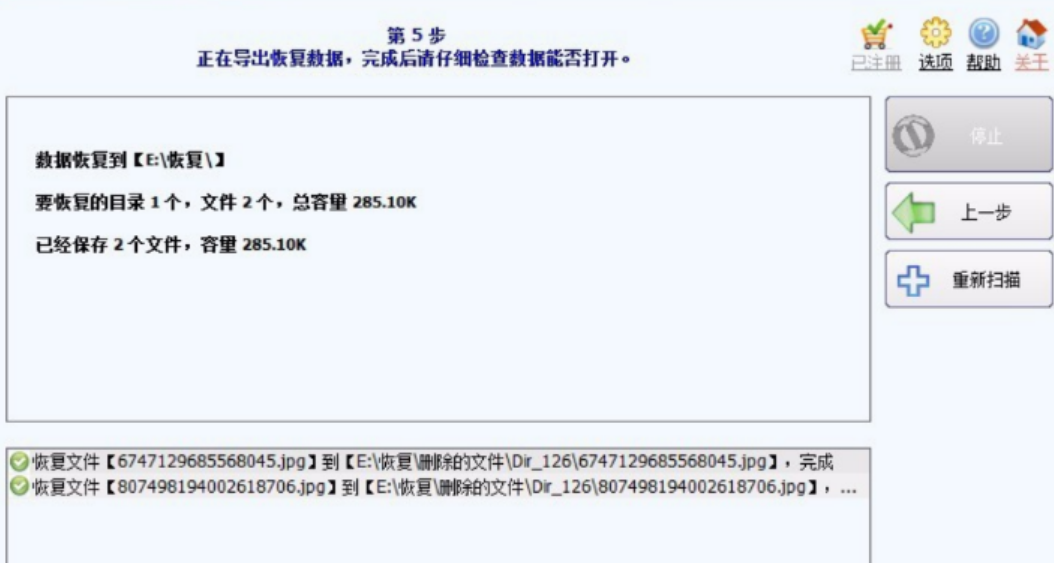 4.软件恢复并导出数据,提示完成后可建成被恢复的数据是否可以打开就可以啦。