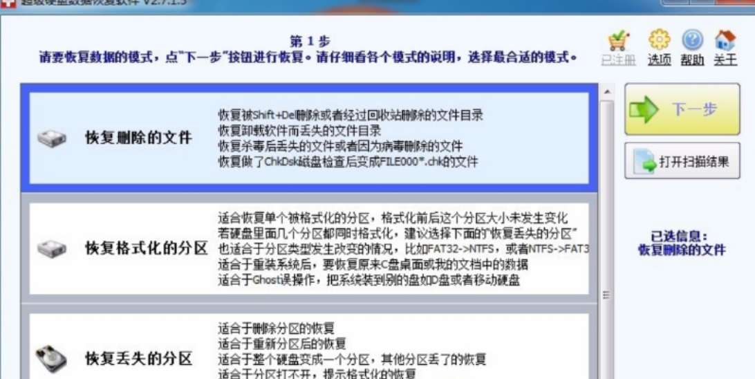 软件版本:超级硬盘数据恢复软件 v2.7.1.5
